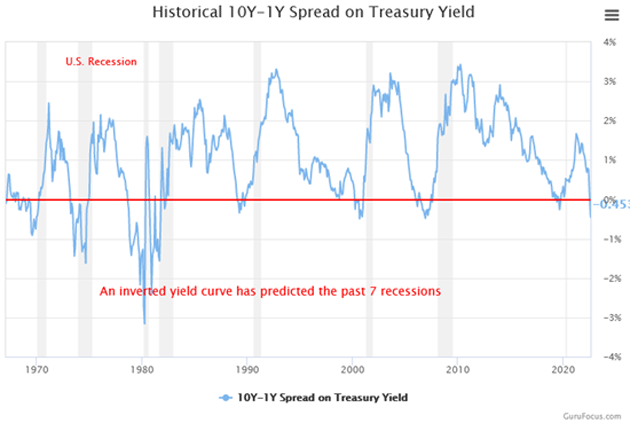 Die Erkenntnis, dass eine inverse Renditekurve auf eine Rezession hindeutet, ist nicht neu und auch nicht aus der Luft gegriffen. Mein erster Wirtschaftsmentor, der verstorbene Dr. Gary North, lehrte mich in den frühen 1980er Jahren über umgekehrte Zinskurven. Meines Wissens gab es keine wirklichen Forschungsergebnisse, sondern nur anekdotische Beobachtungen, aber sie waren dennoch gültig. Dann bewies mein Freund und Wirtschaftswissenschaftler Campbell Harvey, jetzt an der Duke University, in seiner Dissertation an der University of Chicago 1986 erstmals die Prognosegenauigkeit. Andere bestätigten und erweiterten schnell seine Schlussfolgerungen.