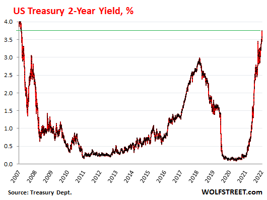 Die Rendite 2-jähriger Staatsanleihen stieg um 17 Basispunkte auf 3,75% und erreichte damit den höchsten Stand seit Oktober 2007: