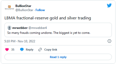 Warum untersuchen die Mainstream-Finanzmedien, wie z.B. Bloomberg, nicht das undurchsichtige Mindestreservesystem der Londoner Gold- und Silbermärkte und fordern die LBMA auf, einen geprüften "Nachweis der Reserven" darüber auszustellen, was hinter dem gigantischen täglichen Gold- und Silberhandel auf Papier steht? Ich denke, wir alle kennen die Antwort auf diese Frage, und es gibt, wie Sie vielleicht überrascht sein werden, eine Parallele zum FTX-Zusammenbruch.