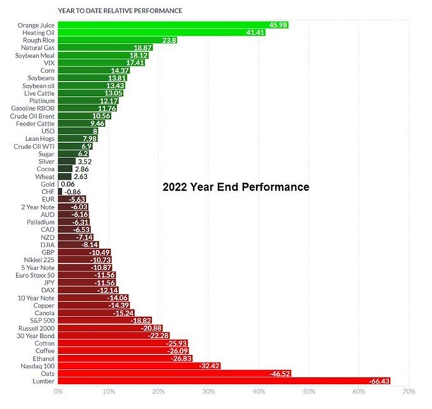 Auf Jahressicht lag der Goldpreis um 2,50 Dollar oder etwa 0,13% niedriger. Comex-Silber schnitt mit einem Plus von 63 Cents und einem Schlusskurs von 24,01 Dollar sogar noch besser ab. Das ist ein Plus von 2,7% im Jahresverlauf. Den Anlegern anderer Rohstoffe und Anlageklassen erging es nicht so gut, wie Sie unten sehen können: