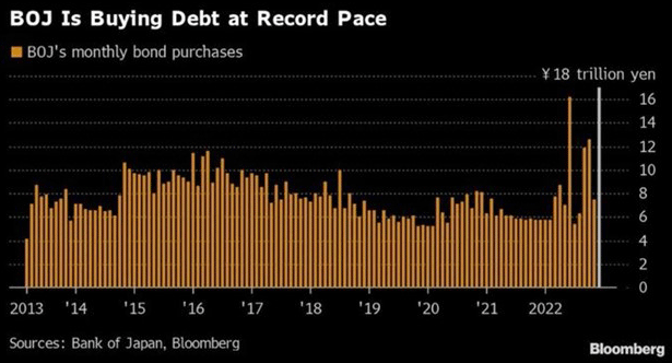 Gegenwärtig sind die Zinssätze aus dem einfachen wirtschaftlichen Grund weiter gestiegen, dass es bei Anleihen mehr Verkäufer als Käufer gibt. Dies führt zu niedrigeren Anleihekursen und höheren Zinsen. Die traditionellen Käufer haben das Gebäude verlassen. Die EZB? Sie kauft keine Staatsanleihen. Ebenso wenig wie die PBOC oder die BoE. Und die BoJ wird in absehbarer Zeit nicht zurückkommen, da sie verzweifelt versucht, ihren eigenen Anleihemarkt zu verwalten.