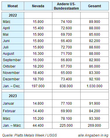 Das US Geological Survey (USGS) veröffentlichte in dieser Woche die aktuellen Zahlen zur Silberproduktion der USA für den Monat März 2023.