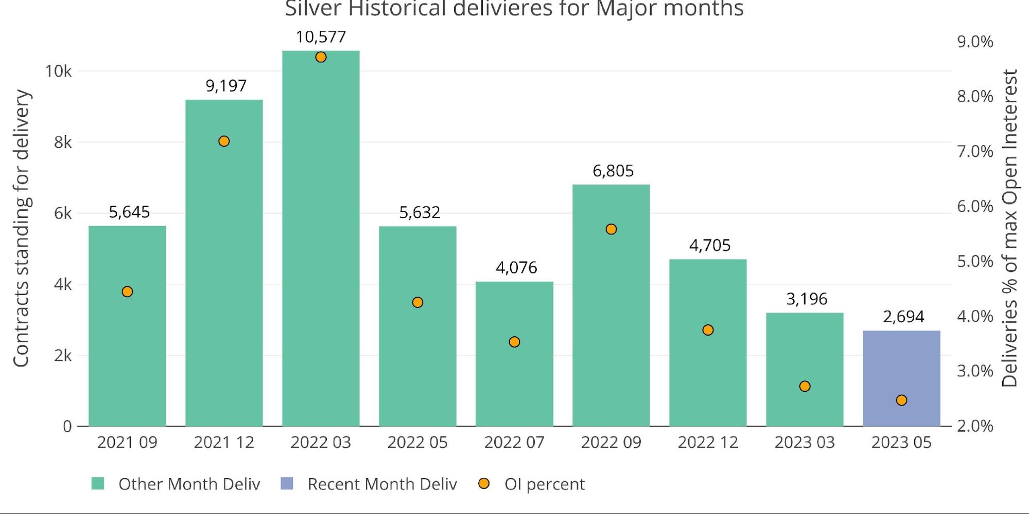 Bei beiden Metallen hält das hohe Liefervolumen an. Es ist zwar gegenüber dem Höchststand zurückgegangen, aber immer noch recht hoch. Die physischen Bestände sind aufgebraucht, so dass nicht mehr viel Metall übrig ist, um den Liefermarkt zu stützen. Die Daten zeigen, dass der Druck weiter zunimmt. Irgendwann wird der Damm brechen und die Comex wird gezwungen sein, alle Kontrakte bar abzurechnen, nicht nur 10% der Goldkontrakte, wie sie es in diesem Monat getan hat. Einige Anleger lernen gerade die Bedeutung von "Wenn du es nicht hältst, besitzt du es nicht".