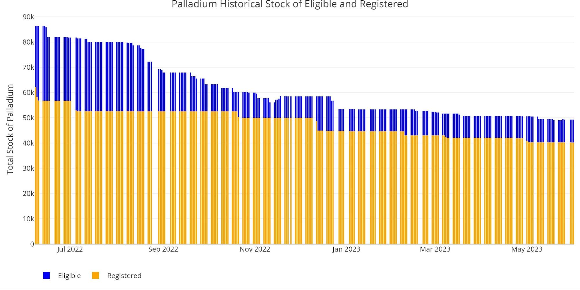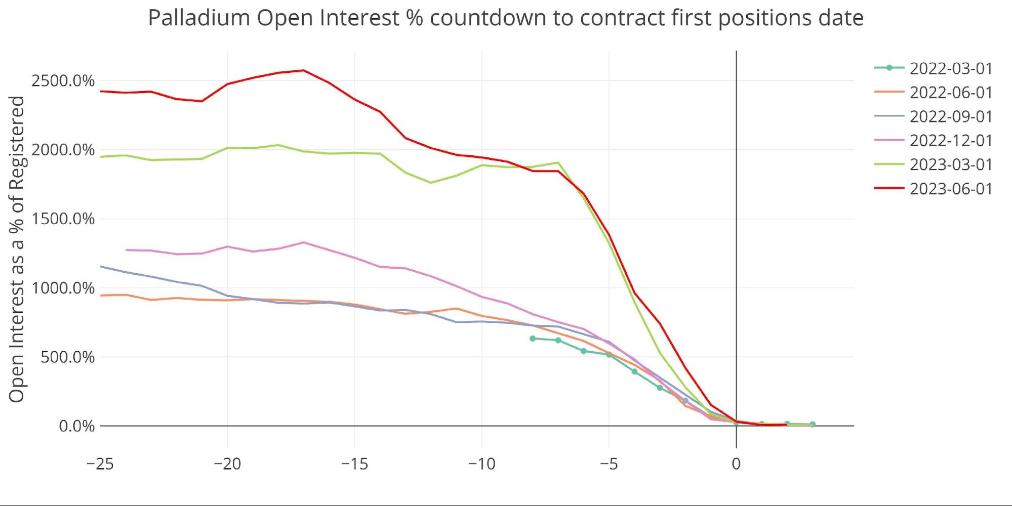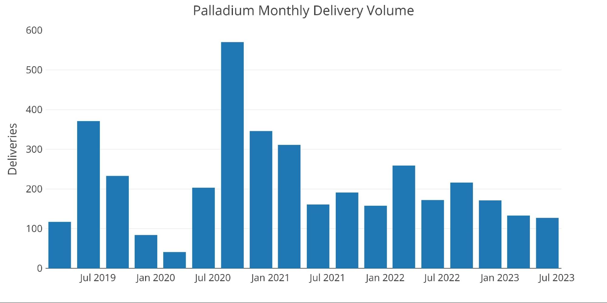 Schließlich wenden wir uns dem Palladium zu, wo das Liefervolumen den niedrigsten Stand seit März 2020 erreichte.
