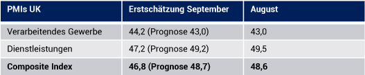 Die Einzelhandelsumsätze nahmen per August im Monatsvergleich um 0,4% (Prognose 0,5%) nach zuvor-1,1% (revidiert von -1,2%) zu. Im Jahresvergleich ergab sich ein Rückgang um 1,4$ (Prognose -1,2%) nach zuvor -3,1% (revidiert von -3,2%). Der vom CBI ermittelte Auftragsindex sank per September von zuvor -15 auf -18 Zähler.