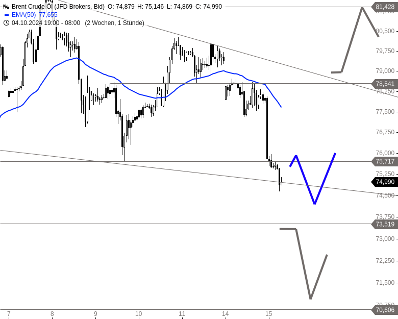 Der Ölpreis Brent konsolidierte am Montag zunächst den Anstieg aus, rutschte dann aber im späten Handel deutlich zurück. Dies führt die Notierungen jetzt auch wieder unter die 75,72 USD.