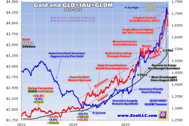 Diesmal scheinen die Bestände dieser dominanten Gold-ETFs jedoch provokativ genug genau wie der Goldpreis ihren Höchststand erreicht zu haben. Dieser Chart zeigt die Bestände von GLD+IAU+GLDM im Vergleich zu den Goldpreisen der letzten Jahre. Auch wenn dies alles noch sehr jung ist, sieht es ganz so aus, als hätte sich die Goldjagd der amerikanischen Aktienanleger bereits mit [...]