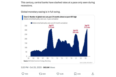Der Anstieg der Inflation fällt mit einer globalen Agenda zur geldpolitischen Lockerung zusammen. Ein Beitrag von The Kobeissi Letter auf X besagt, dass die Zentralbanken in den letzten 24 Monaten 312 Mal die Zinsen gesenkt haben, was die zweithöchste Gesamtzahl seit mindestens 25 Jahren darstellt. Tatsächlich ist dies nur eine Zinssenkung weniger als die Reaktion auf die [...]