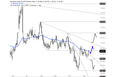 Innerhalb des mittelfristigen Abwärtstrendkanals bleibt jederzeit ein Rückfall möglich. Die zentrale Unterstützung liegt bei 62,64 USD – ein Bruch dieser Marke könnte eine Abwärtsbewegung in Richtung 61,60 USD und darunter bis 60,19 USD auslösen. Gelingt hingegen ein Ausbruch über den Abwärtstrend und insbesondere über 64,32 USD, wäre ein kleines Kaufsignal aktiv. In der Folge [...]