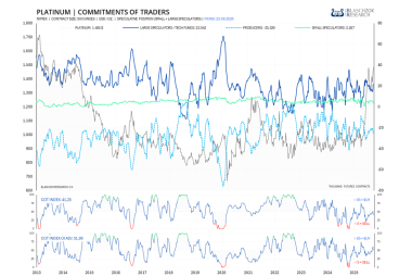 Zum Schlusskurs von rund 3.691 USD hielten die kommerziellen Händler am Dienstag, den 23. September, kumuliert eine Leerverkaufsposition in Höhe von 298.403 Gold-Future-Kontrakten. Im Zuge der kräftigen Gold-Rally der vergangenen Wochen hat sich die kommerzielle Netto-Short-Position erwartungsgemäß wieder deutlich ausgeweitet. Auch wenn die aktuellen Terminmarktdaten erneut ein [...]