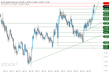 Der Ausbruch aus der bis August gebildeten Dreiecksformation ist in einen stabilen Aufwärtstrend übergegangen, der weitere Zugewinne in Aussicht stellt. Auch in der vergangenen Woche wurde ein neues Rekordhoch erreicht, das nun nahe bei 3.900 $ liegt. Der feste Wochenschluss deutet auf anhaltenden Aufwärtsdruck hin. Zum Wochenstart am Montag könnte sich direkt Anschlussdynamik [...]