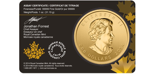 Nach der Maple-Leaf-Sonderedition "99999", die in den Jahren 2007-09 und 2012 erschien, ist sie nach der einmaligen Auflage des Mountie (Polizeistaffel der "Royal Canadian Mounted Police"), die dritte 1-Unzen-Anlagegoldmünze der Kanadier, die eine Feinheit von 99,999% aufweist.