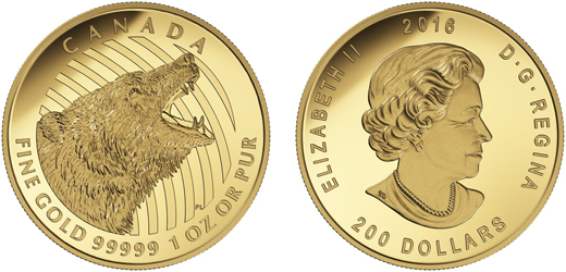 Als konstitutionelle Monarchie gehört Kanada der Commonwealth of Nations an. Die britische Königin Elisabeth II. ist das offizielle Staatsoberhaupt dieses freiwilligen Staatenverbundes. Ihr Antlitz ziert daher jede kanadische Münze. In der Rundschrift sind neben ihrem Namen der mit "200 Dollars" (= kanadischen Dollar, CAD) viermal so hohe Nennwert wie üblich und das jeweilige Prägejahr aufgeprägt. Ab der dritten Ausgabe (Grizzlybär) ist zusätzlich Rechts der Schriftzug "D.G.REGINA" zu finden. Interessant ist auch die Ausführung des Münzrandes, der nicht durchgehend geriffelt, sondern durch mehrere glatte Abschnitte unterbrochen ist.