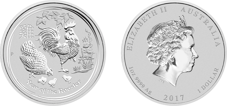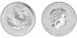 | 1 oz | 1,00 AU$ | Hahn, Lunar-Kalender II | 2017 | geprägt | 999 | 31,135 g | Ø 45,60 x 2,60 mm |