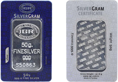 Anzumerken wäre, das die IGR Barrenprodukte teils unter weiteren Markennamen, wie "SilverGram" bzw. "GramGumus", angeboten werden. Analog zu "IGR" versus "IAR" ("Istanbul Altin Rafinerisi") sind es die englische- bzw. türkische Schreibweise, die Anwendung fand. Auch die Gestaltung der Blisterverpackung kann varrieren.
