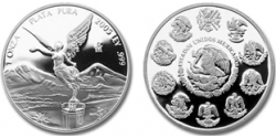 Auf der einen Münzseite ist das Motiv der Siegesgöttin Victoria, die für die vergöttlichte Personifikation des Sieges und als Symbol für die Freiheit (spanisch: "libertad") steht, sowie die beiden Vulkane "Iztaccíhuatl" und "Popocatépetl", abgebildet. Das mexikanische Staatswappen mit Adler und Schlange befinden sich auf der anderen Seite. Dieses Münzmotiv ist auf allen Münzstückelungen zu finden. Die Feinheit, der von der mexikanischen Münzprägestätte Casa de Moneda de México emittierten Silbermünzen ist bis heute unverändert und beträgt 999 ‰.