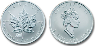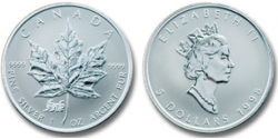| 1 oz | 5,00 C$ | Maple Leaf - Privy Mark | ab 1998 | geprägt | 9999 | 31,11 g | Ø 38,00 x 2,87 mm |