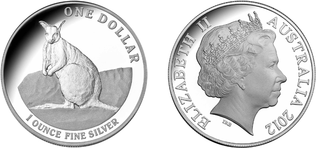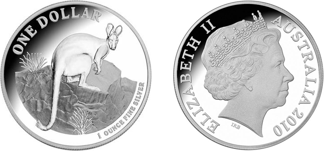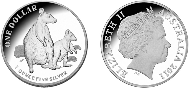Auf der anderen Münzseite ist das Bildnis der englischen Königin Elisabeth II. abgebildet, welches zwar im Prinzip gleich bleibt, jedoch alle paar Jahre dem aktuellen Erscheinungsbild der Queen angepasst wird. Die erste Porträtanpassung der "Silber-Känguru"-Münzreihe fand zuletzt 1999 statt. Zu erkennen ist dies an den Initialen "IRS" des britischen Bildhauers Ian Rank-Broadley, der das derzeit aktuelle Bildnis entworfen hat. Der Landesname "Australia" und das jeweilige Prägejahr ergänzen die Angaben.
