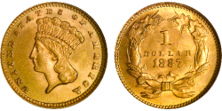 | 1,505 g | 1,00 US$ | 1 $ Gold Dollar | 1849 - 1889 | geprägt | 900 | 1,672 g | Ø 13,00 bzw. Ø 15,00 mm |