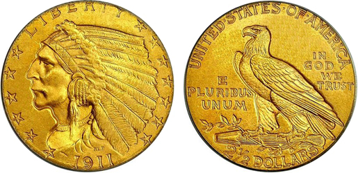 Mit nur 15 Kombinationen (12 Prägejahre aus der Philadelphia Mint und drei aus Denver "D“) gehört der 2½ Dollar Indian Head zur kleinsten Serie in der amerikanischen Münzgeschichte. Außer der 1911er Auflage mit dem Prägezeichen "D", die nur bei 55.680 Exemplaren lag, sind es bei allen anderen mindestens 240.000 Stück.