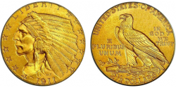 Die 2,5 Dollar und 5 Dollar Indianer-Goldmünzen weisen eine Besonderheit im Prägeverfahren auf. Dabei ist die Oberfläche komplett glatt, die jeweilige Motive sowie die Innschriften sind auf beiden Seiten vertieft angeordnet. Der Rand beider Goldmünzen ist geriffelt.
