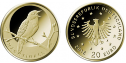 Ab dem Jahr 2016 bis 2021 werden insgesamt sechs Goldgedenkmünzen im Nennwert von 20 Euro zum Thema "Heimische Vögel" auszugeben. Die Bildseiten der Münzen zeigen folgende Motive: Nachtigall (2016), Pirol (2017), Uhu (2018), Wanderfalke (2019), Weißstorch (2020) und Schwarzspecht (2021). Der Seriencharakter wird durch die einheitliche Wertseite, bei der nur das Ausgabejahr angepasst wird, unterstützt.