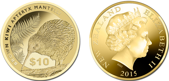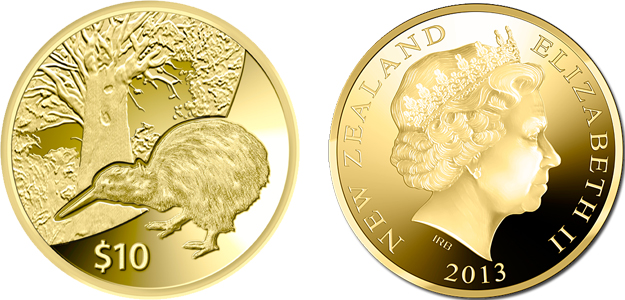 Auf der ersten Goldmünze war neben dem Kiwi die stilisierte Landkarte Neuseelands zu sehen und auf der zweiten die 4 Sterne, die das Sternzeichen “Kreuz des Südens” symbolisieren. Seit dem 2011er Motiv sind typische neuseeländische Pflanzen- und Landschaftsmotive (2011: Silberfarn, 2012: Kowhai-Busch, 2013: Tāne Mahuta, ein Kauri-Baum, 2014: Mitre Peak (ein Berg) und 2015: Brown Kiwi) abgebildet.