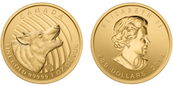 | 1 oz | 200,00 C$ | Howling Wolf, Call of the Wild Serie | 2014 | geprägt | 99999 | 31,11 g | Ø 30,10 x 2,80 mm |