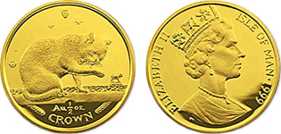 Im Jahr 1988 wurde die Münzserie "Isle of Man Cats Coins" in Gold, sowie in Silber und Kupfer/Nickel aufgelegt. Zeitweise gab es auch eine Version in Platin. Das Motiv der Rassekatze ist auf allen vier geprägten Metallarten gleich, alljährlich jedoch unterschiedlich.