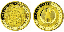 (Die beiden Goldmünzen "1 Deutsche Mark" und "200 Euro Einführung des Euro", gehören nicht zur dieser Münzserie 100 Euro Goldmünzen und wurden einmalig zum Andenken der Währungsumstellung geprägt. Gleiches gilt für die seit 2010 geprägte 20 Euro Goldmünzenserie "Deutscher Wald".)