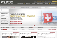 Die Angebotspalette entspricht, bis auf einige länderspezifische Ausnahmen, exakt dem deutschen Angebot und umfasst alle gängigen Münzen und Barren in den vier Edelmetallarten. Das von der ganzen pro aurum Gruppe angebotene Zollfreilager wird von Zürich aus gesteuert, ebenso die Auslieferung des schweizerischen Onlineshops.