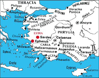 Lydien soll ein reiches und mächtiges Land gewesen sein, wobei der Reichtum auf Gold, das aus einem seiner Flüsse gewonnen wurde, und seine Lage an Handelsstrassen beruhte. Der Sage nach führte der Fluss Gold, weil König Midas seinen Fluch, alles was er berührte in Gold zu verwandeln, in diesem Fluss abgewaschen haben soll.