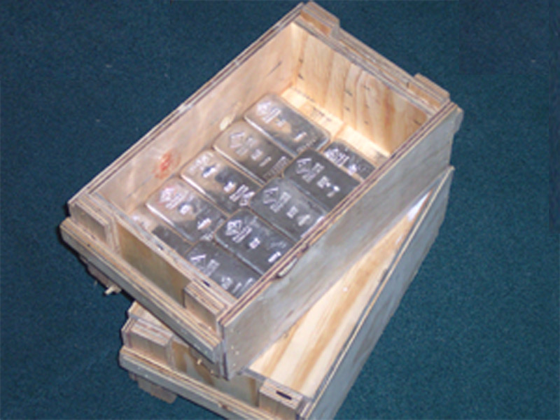Verpackungskisten aus Sperrholz für 20 Stück Silberbarren a 1-kg-Standardbarren (Degussa)