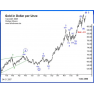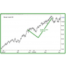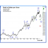 Diese Formation entsteht häufig als erste Welle in einem starken Aufwärtstrend. Der Rücklauf liegt gewöhnlich bei 61,8% = 610 Dollar. Die stark steigenden Kurse in den letzten Monaten weisen daraufhin, dass die Welle bereits bei 640 Dollar beendet wurde und nur einen Rücklauf von 40 Prozent erreicht hat. Dieser kurze Rücklauf in der zweiten Welle [...]