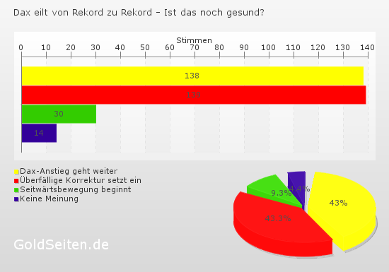Der amerikanische Dow-Jones wie auch der Deutsche Aktienindex jagen von einem Rekordhoch zum nächsten. Mit dem gestrigen Allzeithoch von 11.465 Punkten hat der Dax seit Anfang des Jahres rund 21 Prozent zugelegt. Nie zuvor ist der deutsche Leitindex binnen zwei Monaten so stark gestiegen.
